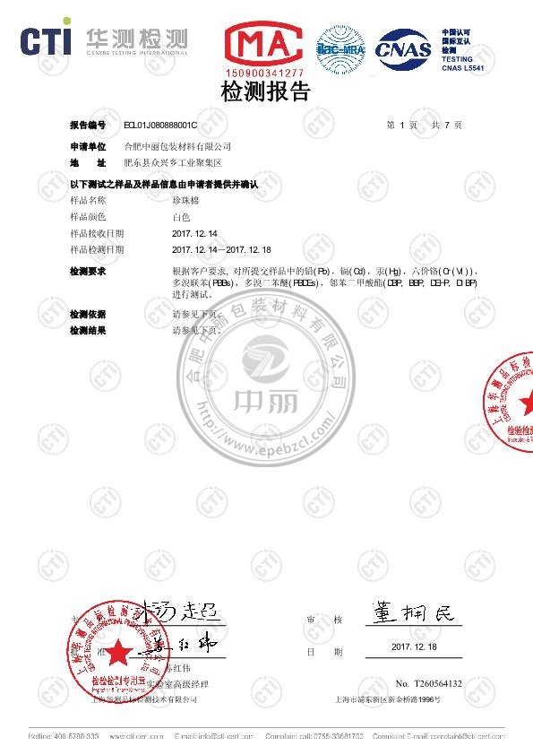珍珠棉檢測報告